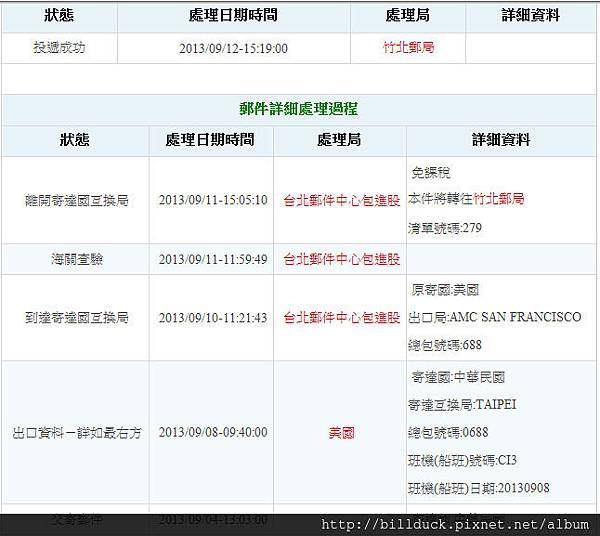 因為包裹到台灣之後,是郵局幫忙轉寄的,所以也可以在中華郵政查包裹進度喔,其實還滿清楚的呢~