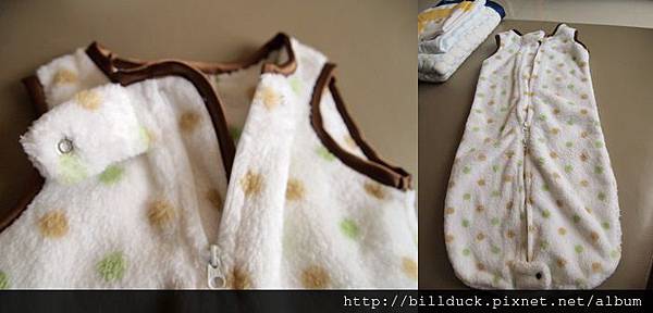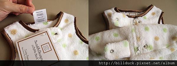 拉鍊內部也有多一塊布料隔離寶寶肌膚, 點點圖案整個就是很可愛啊.