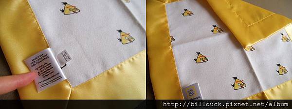 選了可愛的angry bird圖案, 聽說寶寶喜歡摸邊邊這種滑滑的材質..