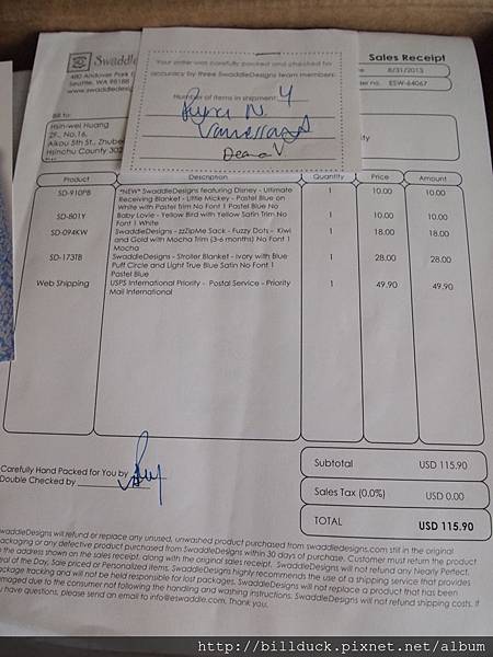Swaddle designs將貨品寄出時會mail通知,並給你一個包裹號碼, 就可以上USPS網站查進度