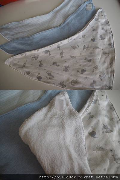 除了阿嬤在市場買的傳統樣式的口水巾之外, 其餘常用的就是下面這些