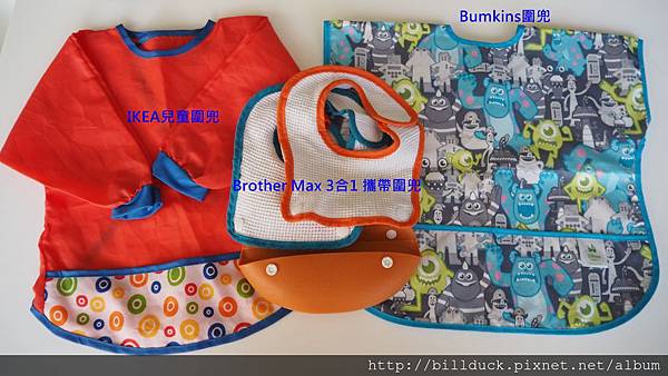 右邊的是Bumkins圍兜(Y拍買330元) 左邊是IKEA兒童圍兜(兩件199元)