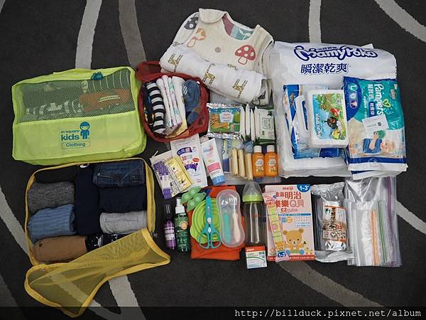五月初帶1Y8M的Ray去北海道旅遊九天的行李內容大概是這些,
