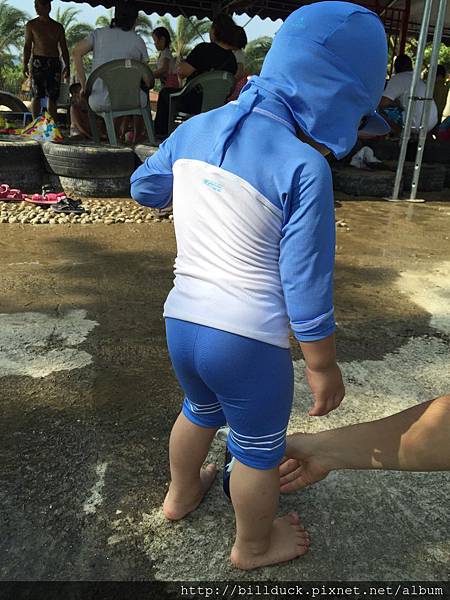 當天在小牛仔玩完沙再去水池玩,一套防曬裝直接搞定,回家前脫下裝進防水袋內就可以輕輕鬆鬆回家休息