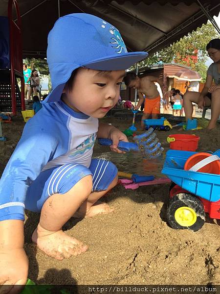 他在沙坑挖來挖去玩了兩個小時,偶爾抬起頭確定爸媽還在附近就繼續挖,難得如此輕鬆讓我覺得有機會還要再帶他去