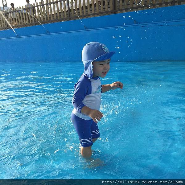 當時主要是因為孩子還小怕他在水中會大便,下水之後也怕他會冷又不會表達