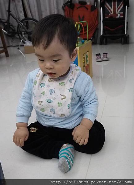 不過這個圍兜有時候Ray會想把它扯掉,或是不肯下面掛著接食物的口袋,有點可惜...